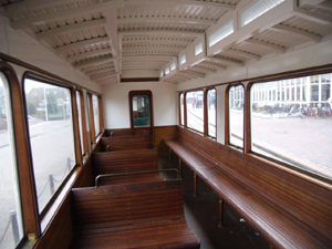 Fahrgastraum des Waggons 53 - ohne Innenbeleuchtung aber die Oberlichten spenden Licht |